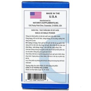 Công dụng: Maca M Male Power hỗ trợ bổ thận, tráng dương, hỗ trợ tăng cường khả năng sinh lý nam.